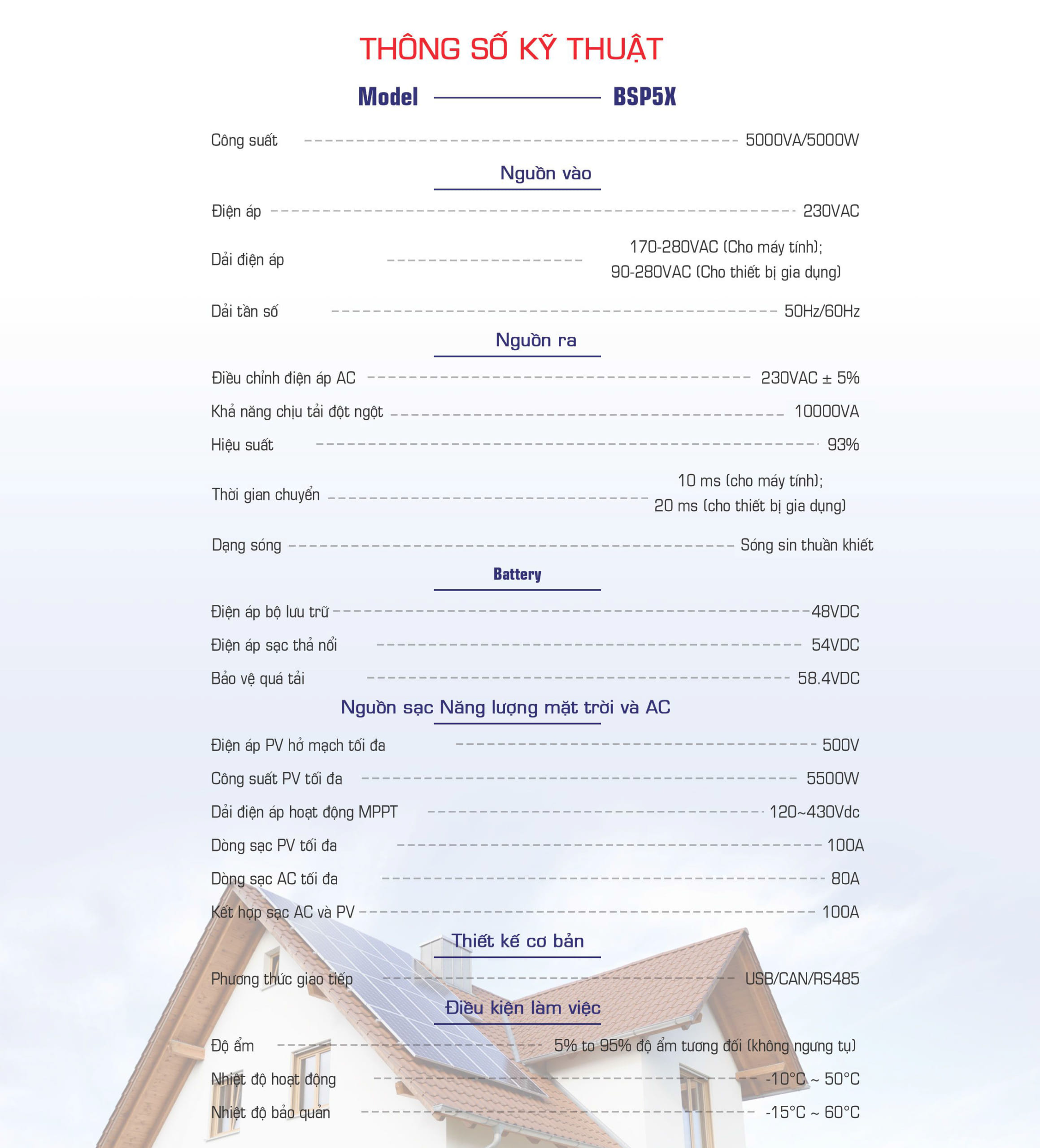 THÔNG SỐ KỸ THUẬT BSP 5X ( 5KW , 450VDC )