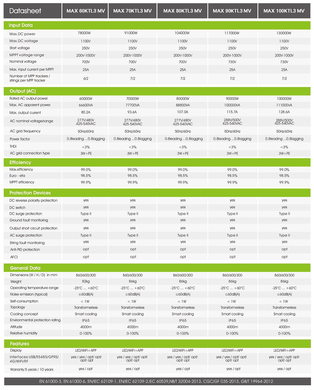 Bảng Thông Số Kỹ Thuật MAX100KTL3 LV